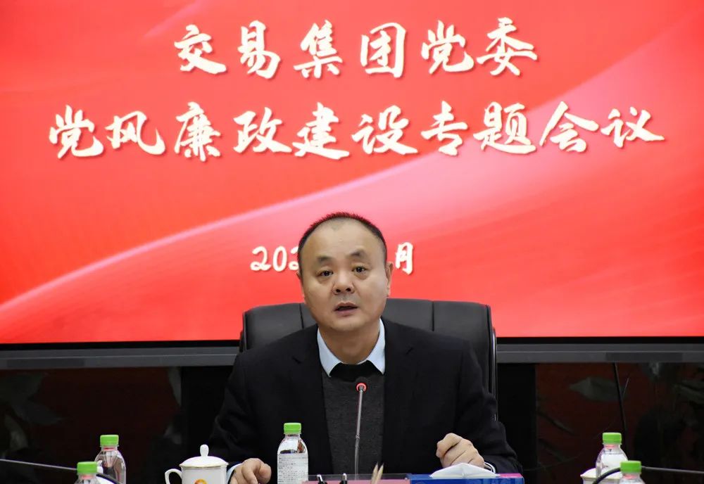 黨建文化 > 工作動態(tài)為進一步貫徹落實全面從嚴治黨要求,深入推進黨風廉政建設工作,1月13日,交易集團黨委召開黨風廉政建設專題會議,總結集團2022年黨風廉政建設工作,對今年工作任務進行安排部署,為集團高質量發(fā)展鞏固夯實風清氣正政治生態(tài)基礎。交易集團黨委書記、董事長王立峰主持會議并講話,集團領導付承華、安家謙、徐松之、秦雪軍、單勇出席會議,集團各部門及權屬企業(yè)負責同志參加會議。