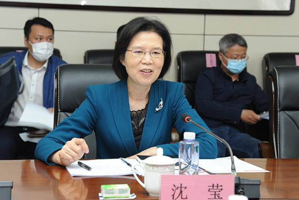 在交易集團(tuán)業(yè)務(wù)大廳,沈瑩聽(tīng)取了交易集團(tuán)基本情況和各業(yè)務(wù)板塊介紹,觀看了企業(yè)文化墻展示,與一線員工親切交流,并主持召開(kāi)調(diào)研座談會(huì)。