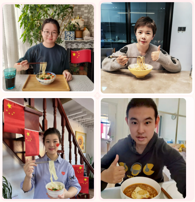 國慶吃面,國泰民安。交易集團(tuán)員工積極響應(yīng)國慶新民俗,自己動(dòng)手制作長壽面,通過“云曬面”,增進(jìn)家國情懷、家企情懷,祝福祖國國運(yùn)綿長、國泰民安。揚(yáng)風(fēng)帆,再啟航!以更加飽滿的熱情和昂揚(yáng)的斗志,時(shí)刻牢記共產(chǎn)黨員為人民謀幸福、為民族謀復(fù)興的初心和使命,扛起新時(shí)代龍江交易人的青春擔(dān)當(dāng)!