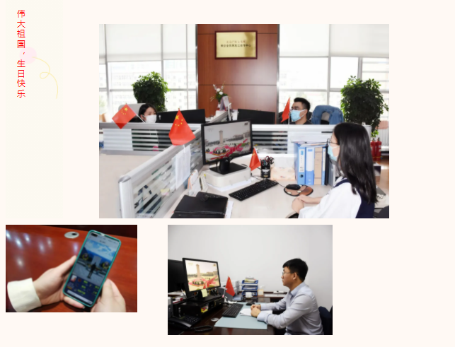 “我愛你,中國!”交易集團(tuán)員工通過紅歌“云拉歌”,我與國旗合影,我們“比心”國旗,制作電子宣傳海報(bào)等形式,歌頌祖國的日益強(qiáng)大,表達(dá)中華兒女的無比自豪和對(duì)祖國的無盡熱愛,共同祝福偉大祖國生日快樂!