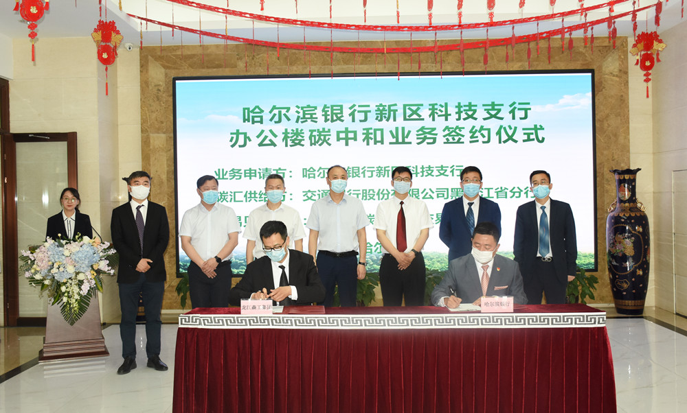簽約儀式上,黑龍江省碳匯交易平臺上線試運營期間首單成交項目“中國龍江森工碳普惠林業(yè)碳匯項目”同步簽約,哈爾濱銀行新區(qū)科技支行從龍江森工碳資產(chǎn)公司購買碳匯項目,用于抵消2022年度運營期間預估產(chǎn)生的溫室氣體排放量,實現(xiàn)預先碳中和。
