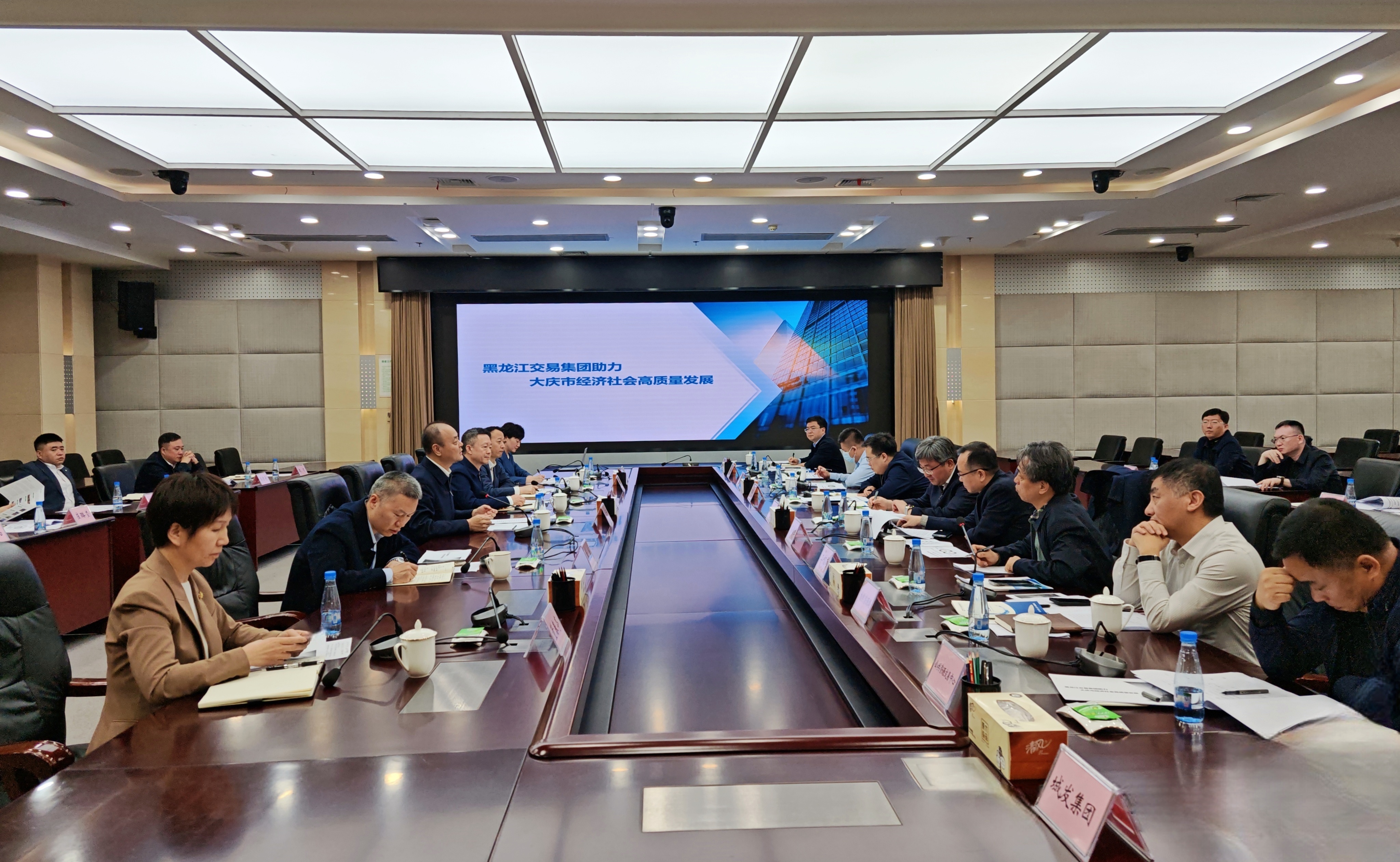 王立峰對(duì)大慶市政府給予的關(guān)注和支持表示感謝。他表示,大慶市作為黑龍江省經(jīng)濟(jì)發(fā)展的“排頭兵”,在全省經(jīng)濟(jì)格局中占據(jù)著舉足輕重的戰(zhàn)略地位。這里既是國(guó)家級(jí)石化產(chǎn)業(yè)基地,又是戰(zhàn)略新興產(chǎn)業(yè)集聚地,產(chǎn)業(yè)動(dòng)能強(qiáng)勁、資源稟賦獨(dú)特,正是交易集團(tuán)深化市場(chǎng)化服務(wù)的核心戰(zhàn)略區(qū)域。交易集團(tuán)將以此次座談為契機(jī),堅(jiān)持“政府主導(dǎo)、市場(chǎng)化運(yùn)營(yíng)”的原則,探索構(gòu)建"本地服務(wù)精準(zhǔn)化、區(qū)域協(xié)同高效化、全省資源一體化"的多層次區(qū)域公共資源市場(chǎng)服務(wù)體系。重點(diǎn)推出“大慶定制”市場(chǎng)化服務(wù)矩陣,充分發(fā)揮招商引資平臺(tái)、“兩非兩資”盤活平臺(tái)、助農(nóng)惠農(nóng)平臺(tái)、“招才匯智”平臺(tái)、科技成果轉(zhuǎn)化平臺(tái)、碳匯價(jià)值轉(zhuǎn)化平臺(tái)、陽(yáng)光招采平臺(tái)、數(shù)據(jù)交易平臺(tái)等9個(gè)專業(yè)化平臺(tái)功能,為大慶市經(jīng)濟(jì)社會(huì)發(fā)展提供“交易+數(shù)智+服務(wù)”市場(chǎng)化服務(wù)支撐,共同架起市企合作的“市場(chǎng)橋梁”,疏通大慶要素流動(dòng)“關(guān)鍵脈絡(luò)”,以市場(chǎng)化“金鑰匙”開啟營(yíng)商環(huán)境優(yōu)化新篇章,奏響龍江振興的共贏樂(lè)章。