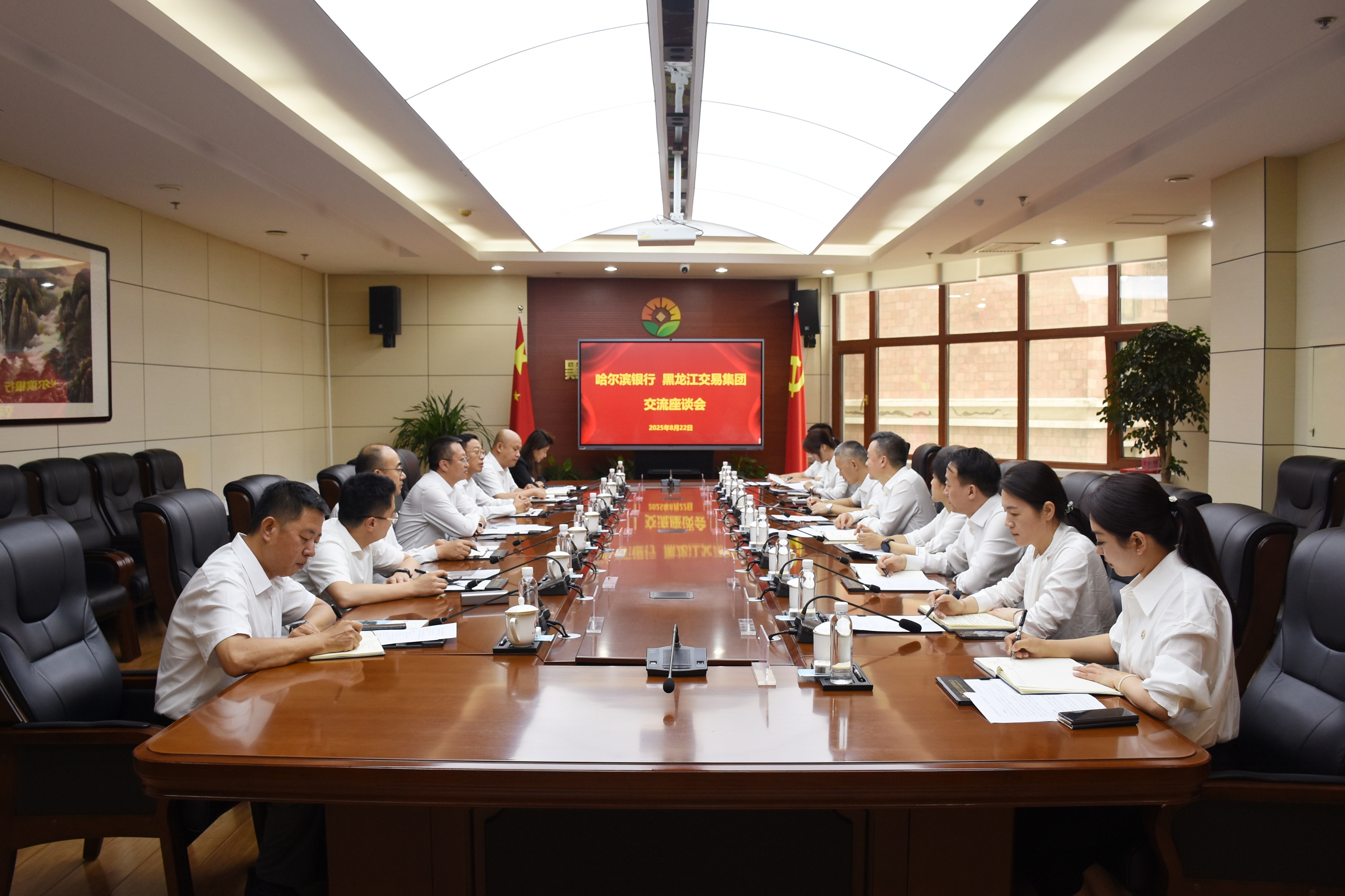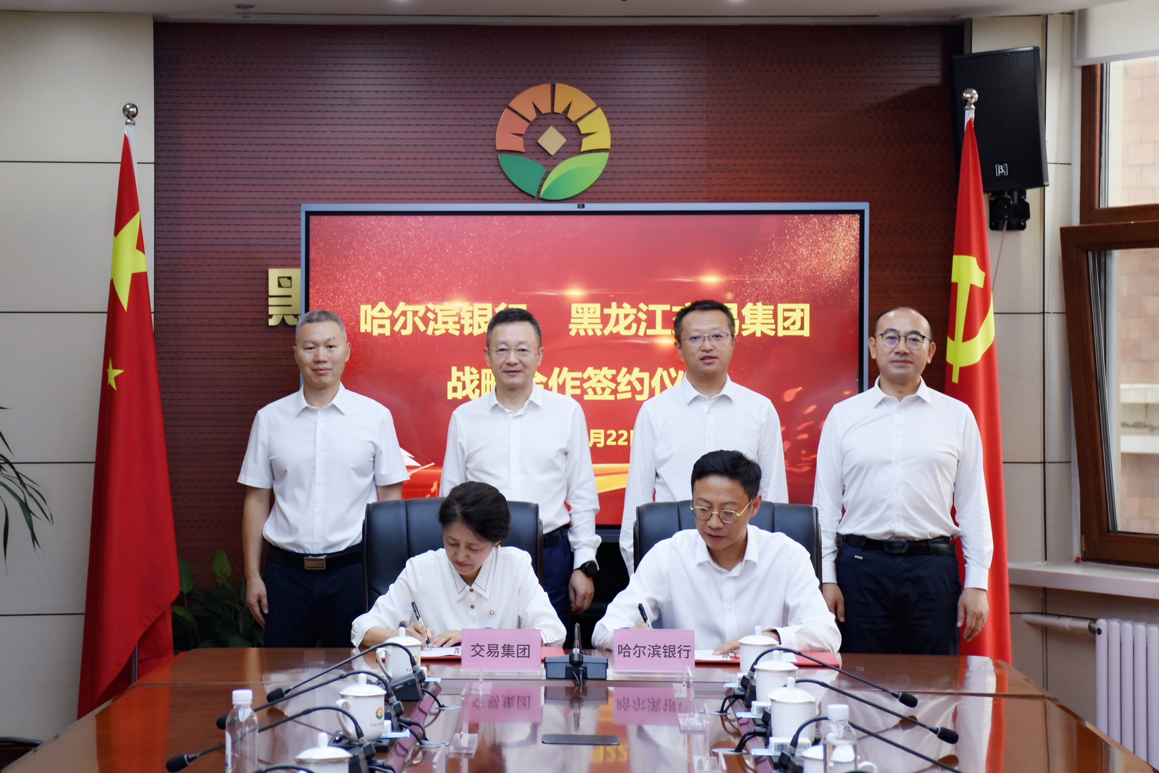 新聞中心 > 集團(tuán)要聞8月22日,交易集團(tuán)與哈爾濱銀行舉行戰(zhàn)略合作簽約儀式。哈爾濱銀行黨委書(shū)記、行長(zhǎng)姚春和,交易集團(tuán)黨委書(shū)記、董事長(zhǎng)夏明禹,副總經(jīng)理單勇,哈爾濱銀行行長(zhǎng)助理房尚及雙方有關(guān)部門和企業(yè)負(fù)責(zé)同志開(kāi)展業(yè)務(wù)座談并出席簽約儀式。哈爾濱銀行副行長(zhǎng)劉殿新,交易集團(tuán)黨委委員、總會(huì)計(jì)師朱安超分別代表雙方簽署合作協(xié)議。