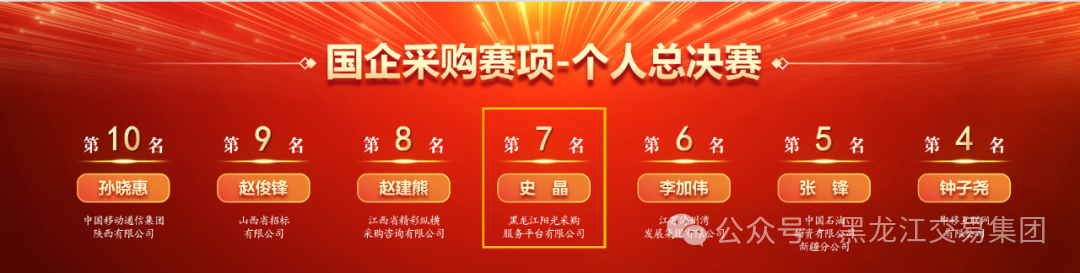 近日,在由中國物流與采購聯(lián)合會公共采購分會指導、《中國招標》期刊有限公司主辦的第二屆全國招標采購技能大賽國企采購賽項總決賽個人賽中,黑龍江陽光采購服務平臺(以下簡稱陽光采購平臺)史晶同志憑借深厚的專業(yè)積累與出色的實戰(zhàn)能力,獲得第七名的優(yōu)異成績,同時斬獲該賽項“最佳風采獎”。這一佳績充分彰顯了采購平臺員工在國企采購領域的專業(yè)實力與人才儲備。